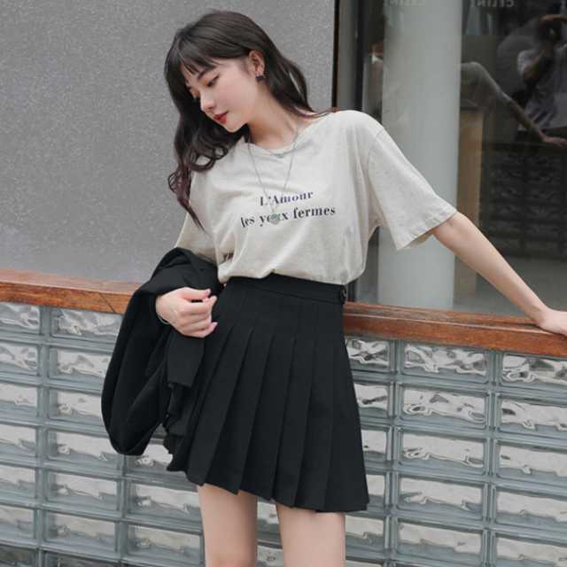 ミニ丈のプリーツスカートをプラスする事で、甘辛コーデが楽しめます。