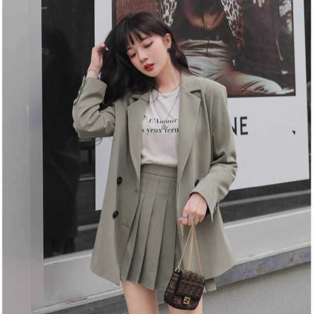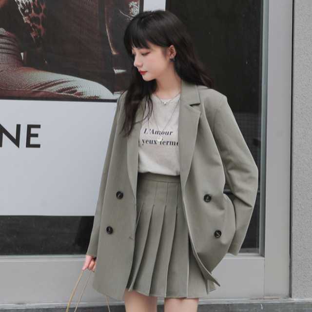 セットアップ スーツセット レディース 2点セット コート スカート ミニ丈 プリーツスカート 通勤 ストレート 長袖 無地 大きめ 20代 30代 デイリー 着痩せ 2色 体型カバー カジュアル キレセク