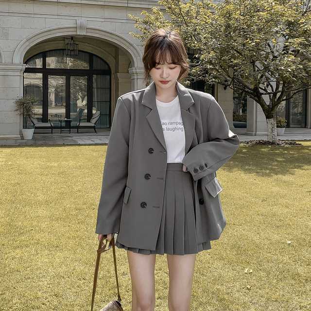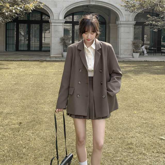 セットアップ スーツセット レディース 2点セット コート スカート ミニ丈 プリーツスカート 通勤 ストレート 長袖 無地 大きめ 20代 30代 デイリー 着痩せ 3色 体型カバー カジュアル キレセク