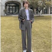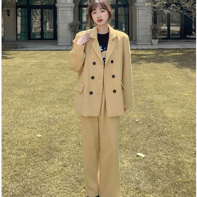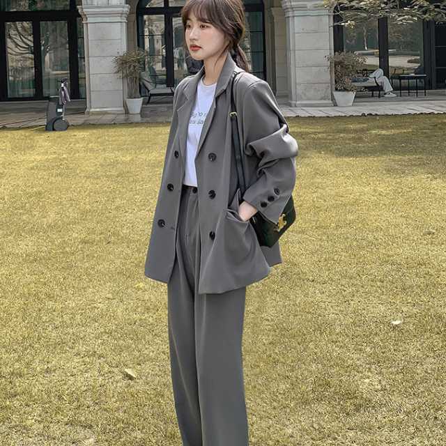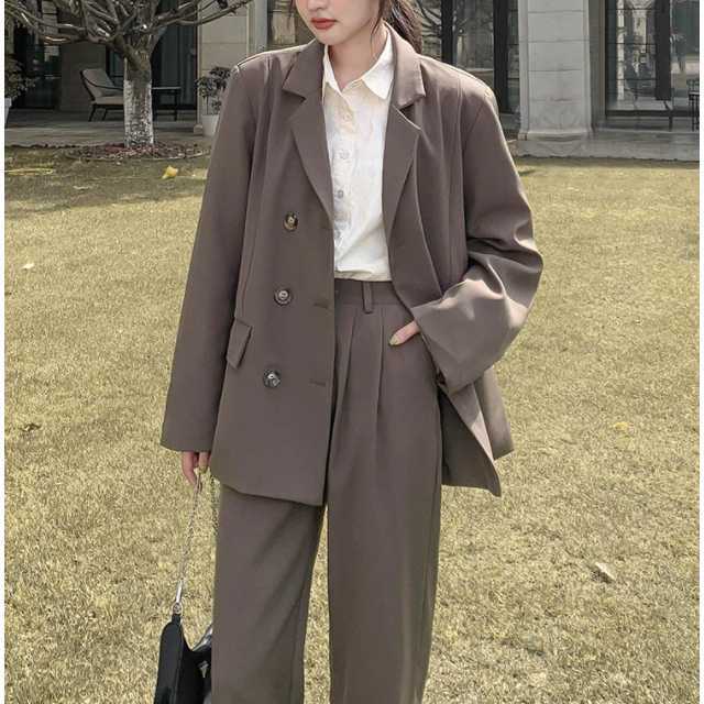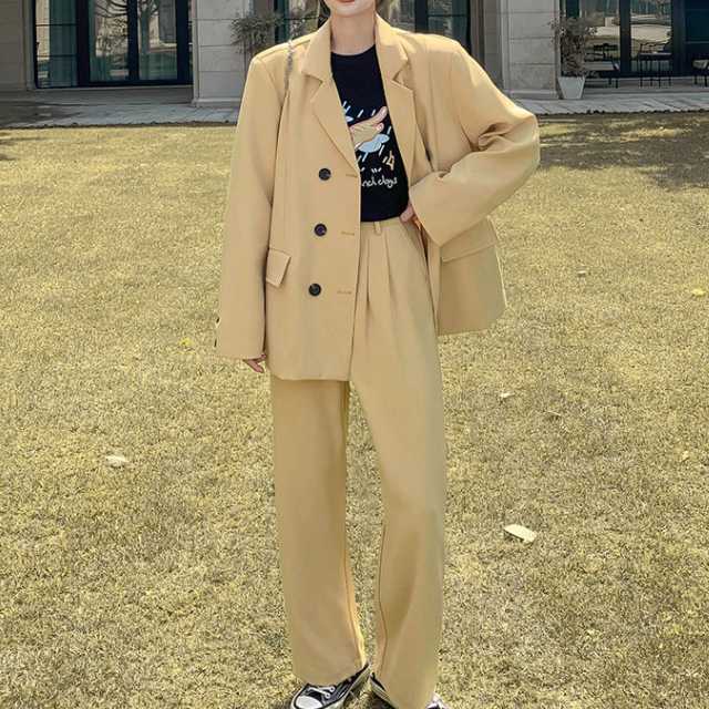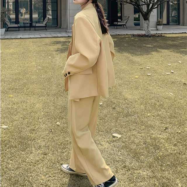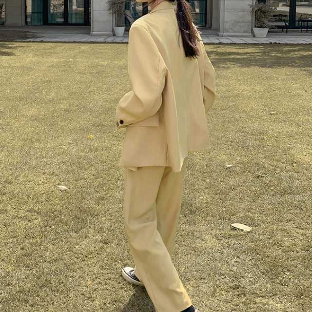 セットアップ スーツセット レディース 2点セット コート パンツ 通勤 ストレート 長袖 無地 大きめ 20代 30代 デイリー 着痩せ 3色 体型カバー カジュアル キレセク