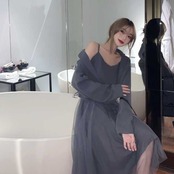 ワンピースの裾の下地は短めだから、チュールから透ける足元がとってもセクシー。