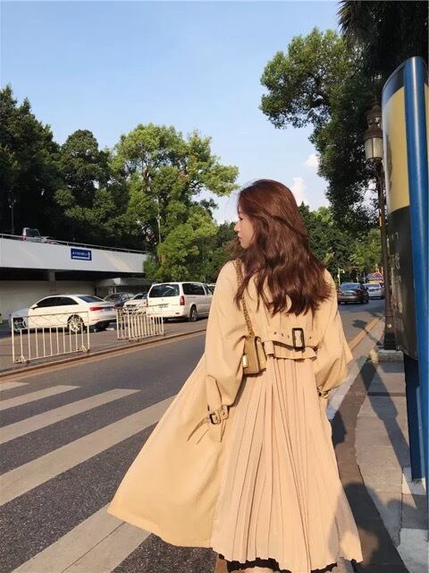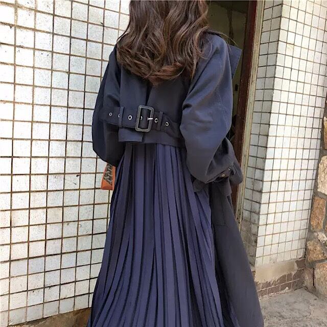 《入荷待ち》レディース トレンチコート 春秋 大人可愛い プリーツ切り替え スタイリッシュ シングルブレストベーシックデザイン プリーツ特集