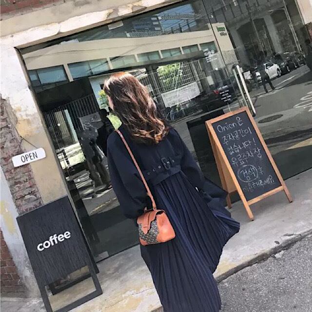 共布ベルトでウエストマークするとシルエットを綺麗に見せてくれます。