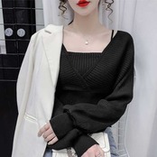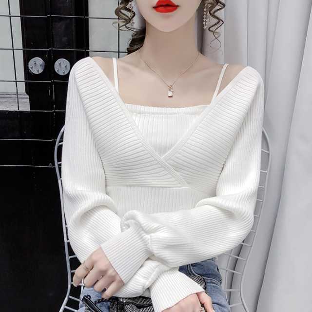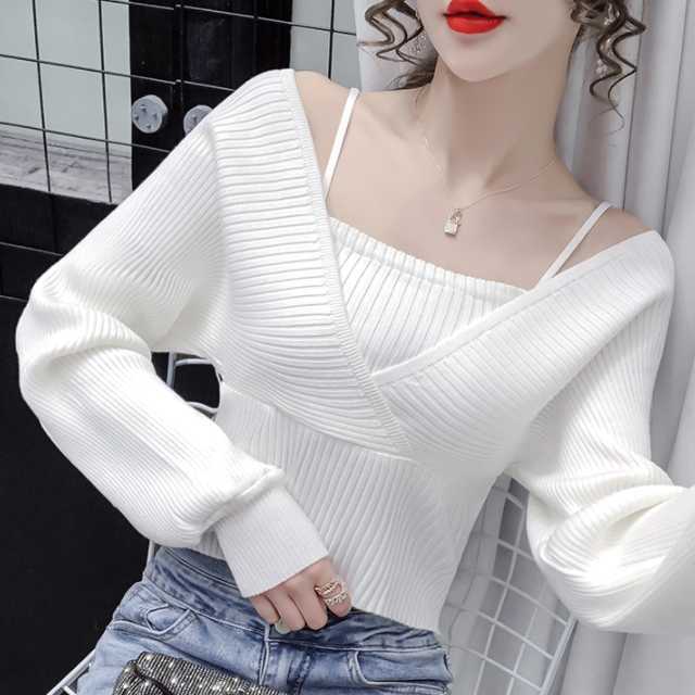 トップス カットソー ニット ニットトップス オフショルダー 重ね着風 ドルマンスリーブ バックコンシャス 可愛い セクシー きれいめ フェミニン 女子 レディース 2色 キレセク