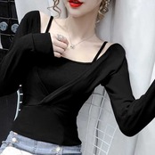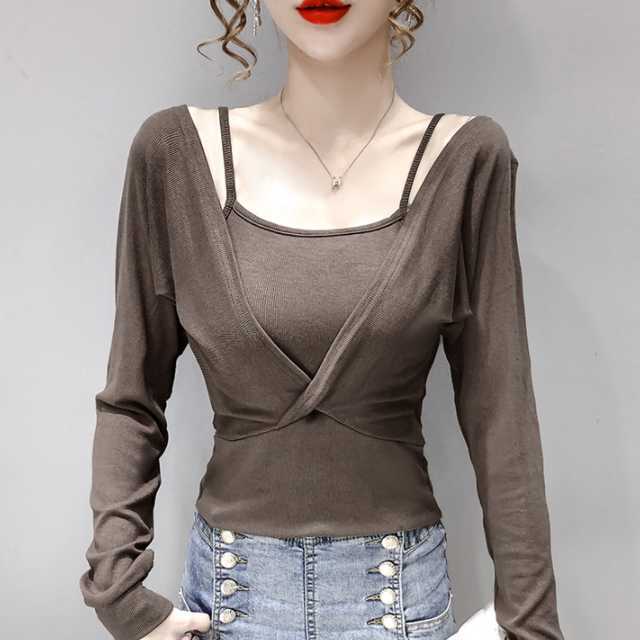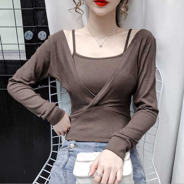 《入荷待ち》トップス カットソー トップス オフショルダー 重ね着風 バックコンシャス オフショルダー 可愛い セクシー きれいめ フェミニン スリム 女子 レディース 3色 キレセク