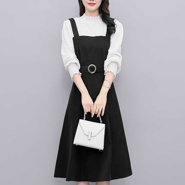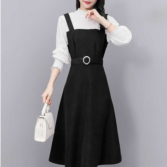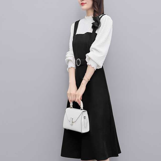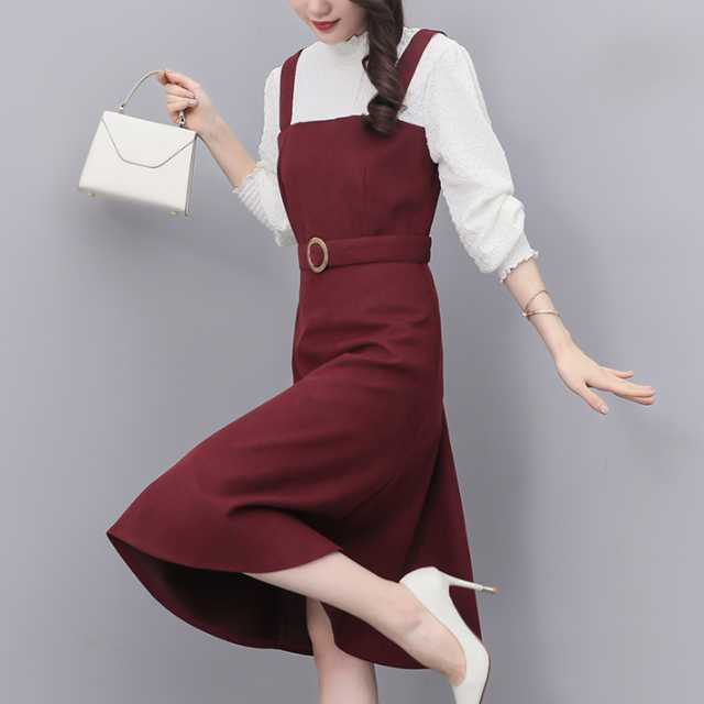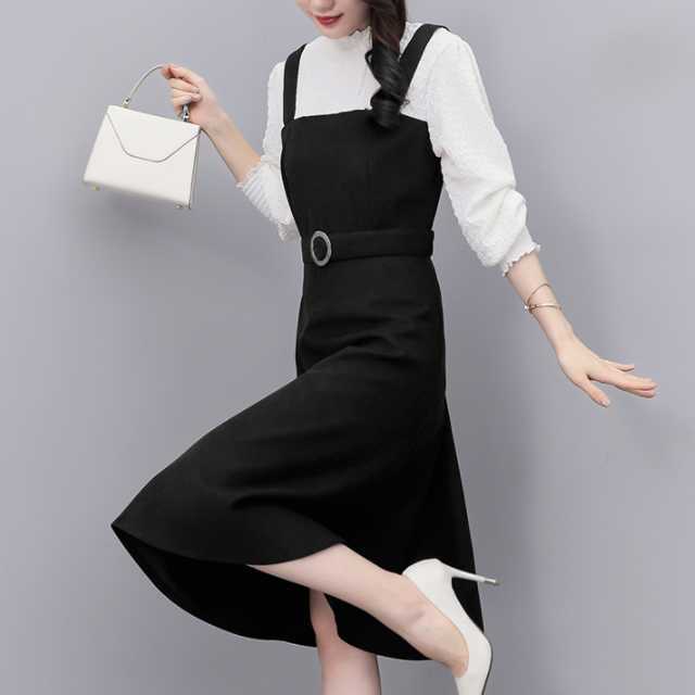 《入荷待ち》ワンピース ミモレ丈ワンピース Aライン ワンピース ハイネック 重ね着風 異素材MIX 大人可愛い キュート フェミニン 長袖 大きいサイズ シフォンスリーブ レディース キレセク