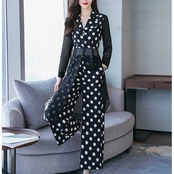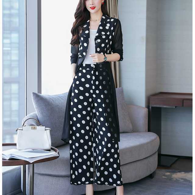 セットアップ ツーピース ジャケット パンツ スーツ ストライプ柄 ドット柄 長袖 ワイドパンツ シースルー エレガント オシャレ 大人かわいい キレセク