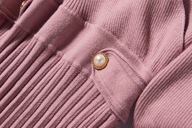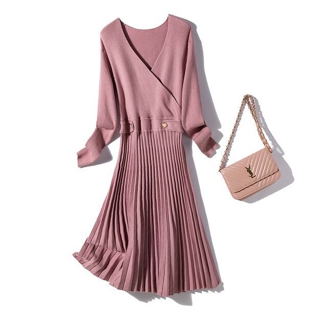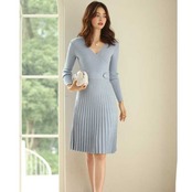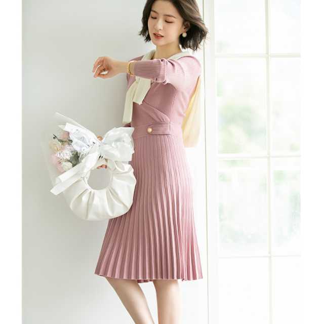 柔らかいニット素材が優しい印象を与える、エレガントなプリーツワンピース♪