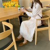 ワンピース ロングワンピース シフォンドレス レディース ロングワンピ レイヤードワンピース 長袖 ハイネック シワ加工 フェミニン シフォンスリーブ キュート かわいい 全2色 キレセク