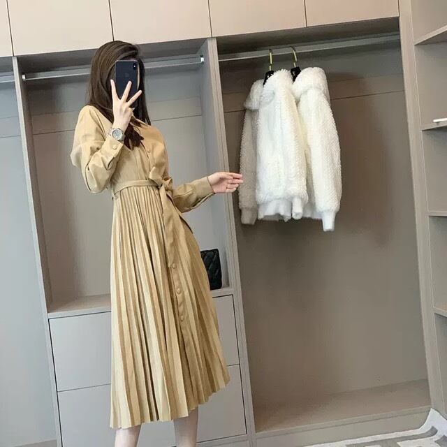 《入荷待ち》入荷待ちプリーツ切り替え 長袖 レディースファッション 秋冬 大人可愛い エレガント通勤ファッション マキシ丈 プリーツ特集