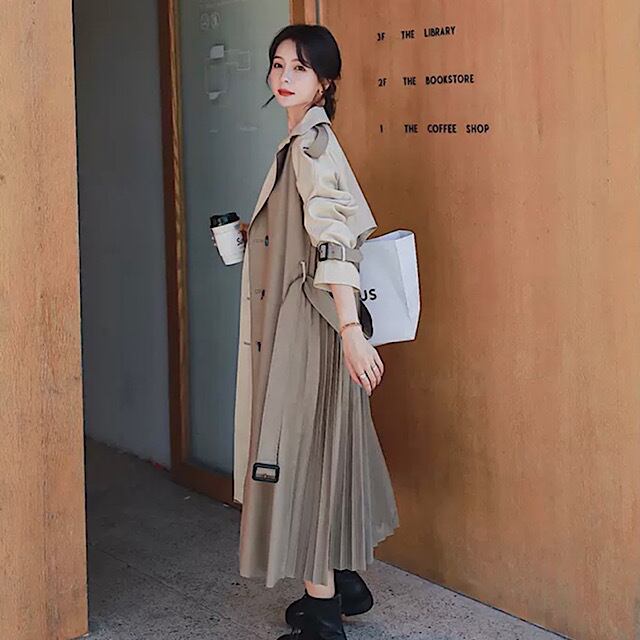 《入荷待ち》レディース アウター 春秋 映えコート リュクス 大きいサイズ ロングコート オシャレ バイカラー 大人可愛い バックプリーツ プリーツ特集