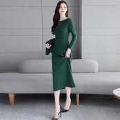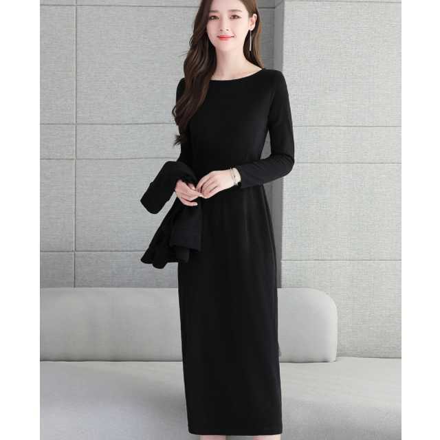 ラウンドネックのワンピースは綺麗にボディラインを拾ってくれます。
