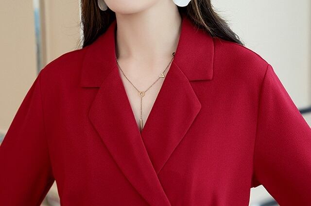 たっぷりプリーツがかった裾が美しい、エレガントな襟付きシャツワンピースです♪