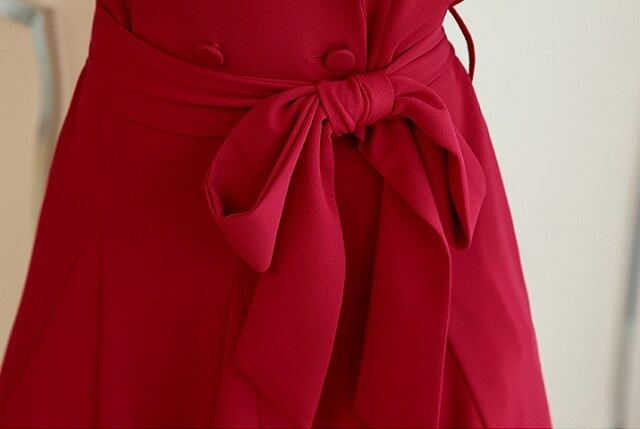 ハイウエストのウエストマークでボディラインにメリハリを与えます。