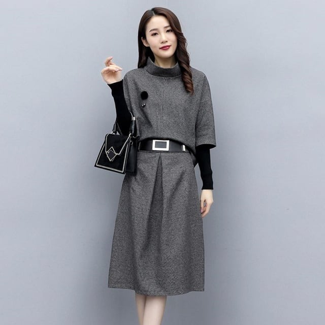 ワンピースのようなハイネックトップスとスカートのセットアップ♪