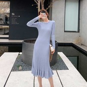 ラウンドネックで上品さを感じさせるニットワンピース♪