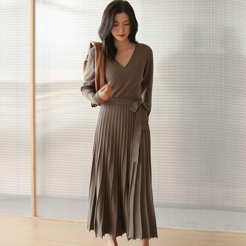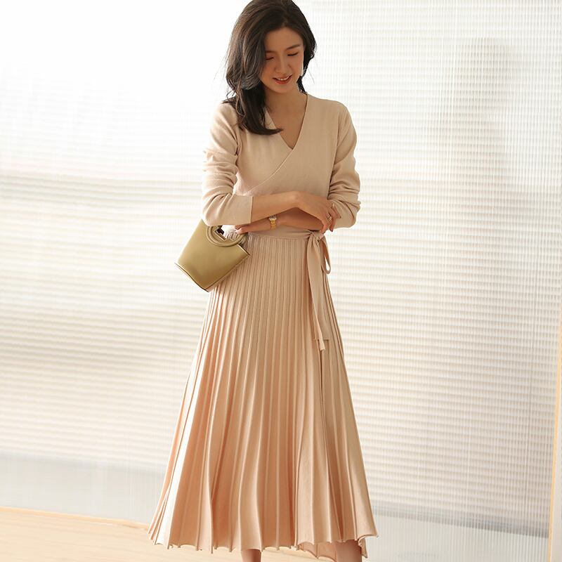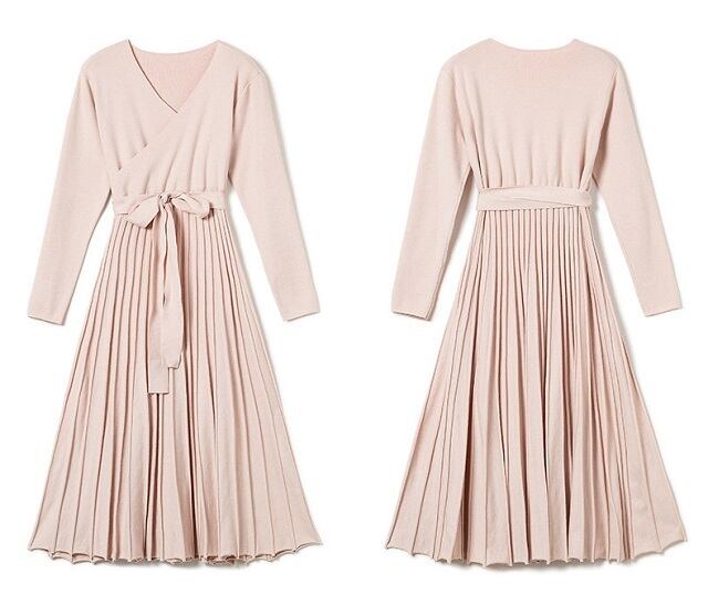 《入荷待ち》ワンピース ニットワンピース プリーツワンピース ニット ワンピ ニット カシュクール プリーツ 長袖 厚手 ひざ下丈 ロング丈 ミモレ丈 秋 冬 ゆったり レディースワンピース ロングワンピース 全9色 キレセク