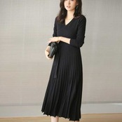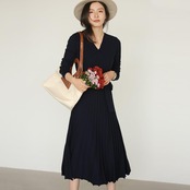 滑らかに揺れるプリーツスカートがクラシカルなハイセンスワンピースです。