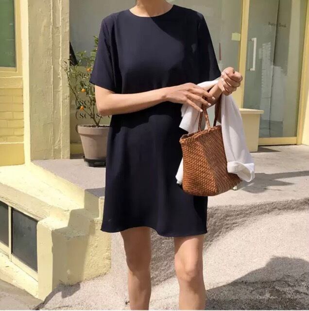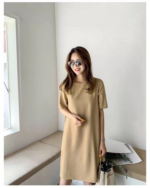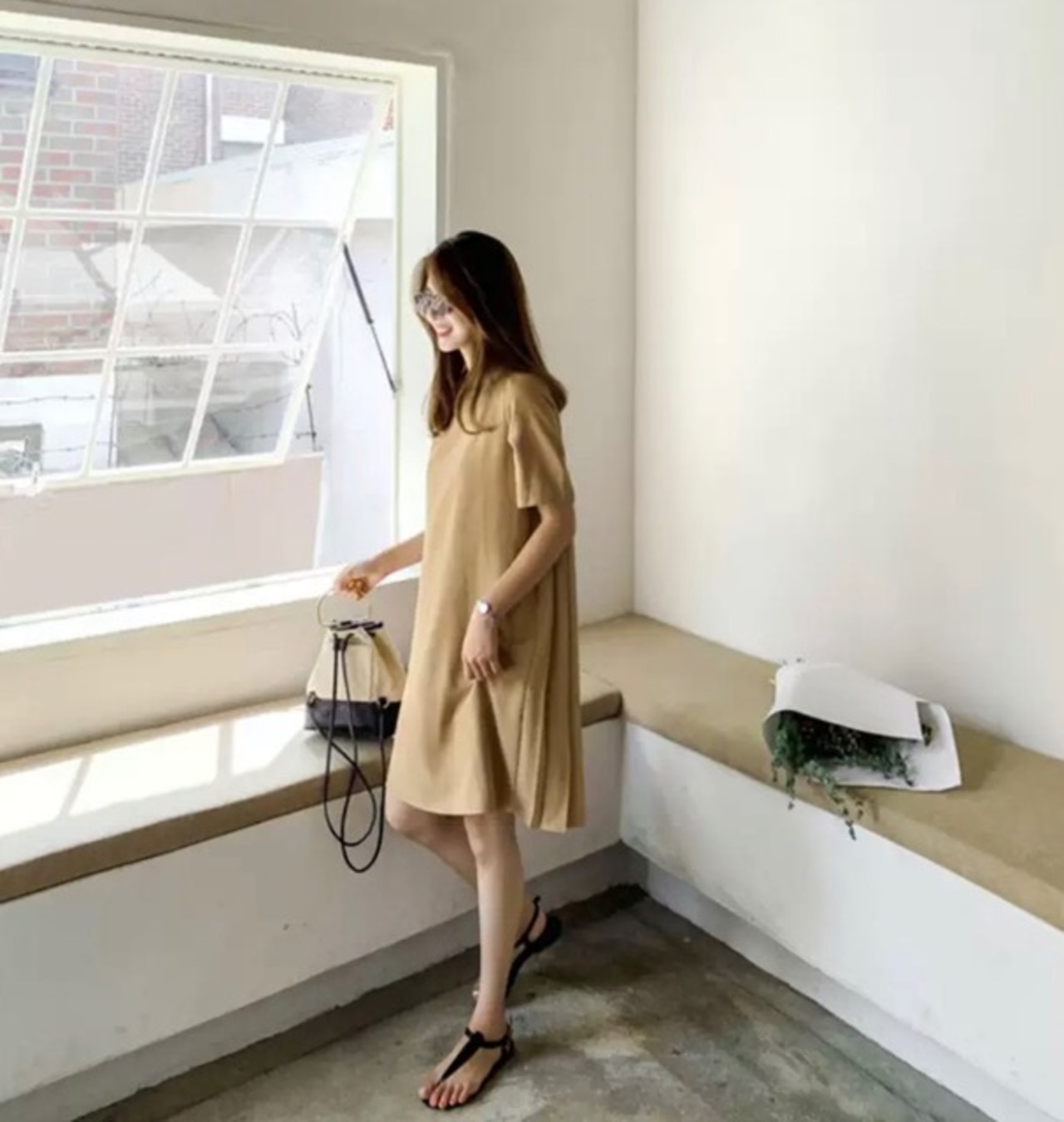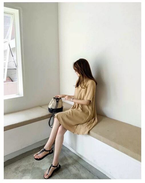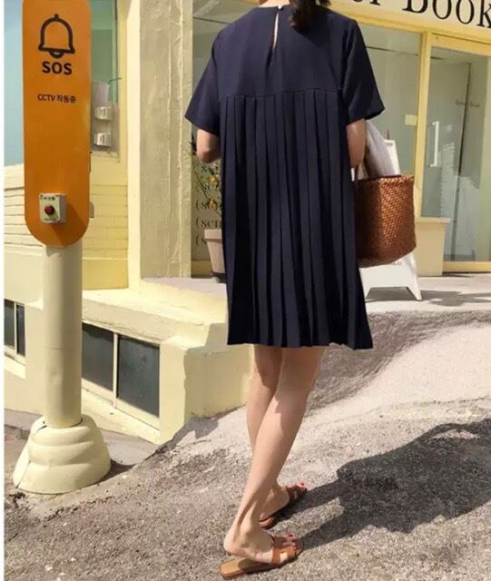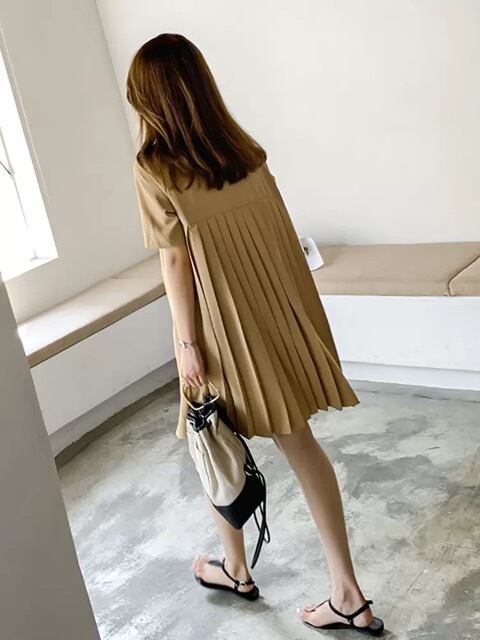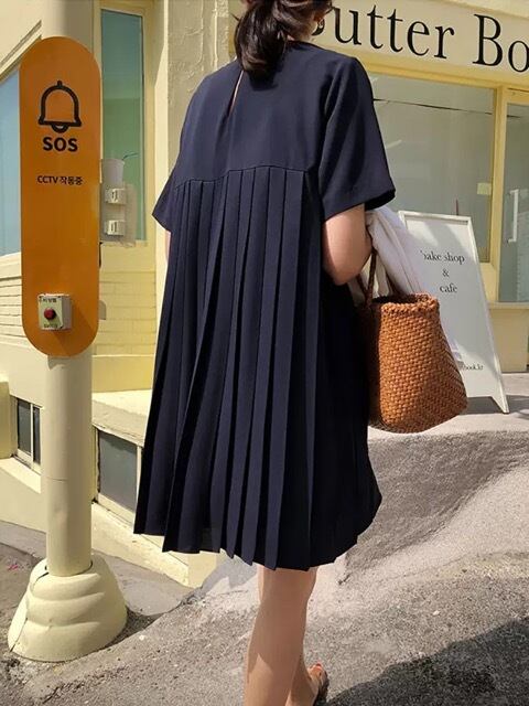 ストンと落ちるAラインのワンピースにプリーツで切り替えました。