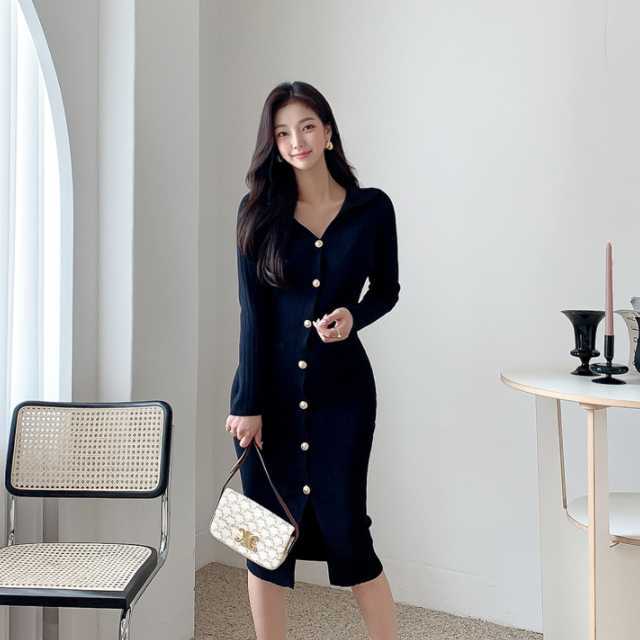 《入荷待ち》ワンピース ニットワンピース ロングワンピース ニットワンピ ニット タイトスカート タイトワンピース スレンダー 大人可愛い きれいめ セクシー ワンピ ミモレ丈 ひざ丈 膝丈 長袖 袖あり キレセク