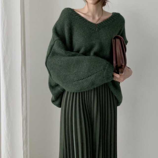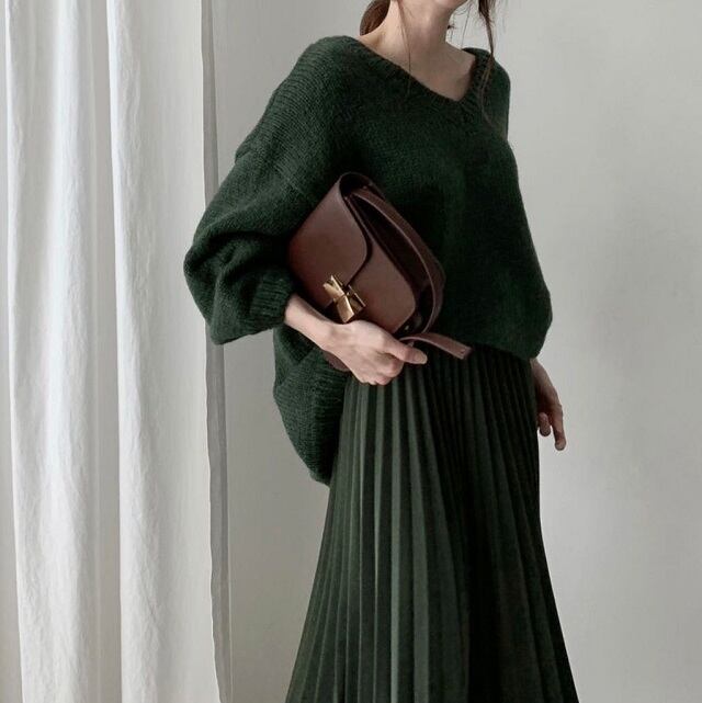 大人の抜け感が漂うニットトップス&プリーツスカートのセットアップ♪