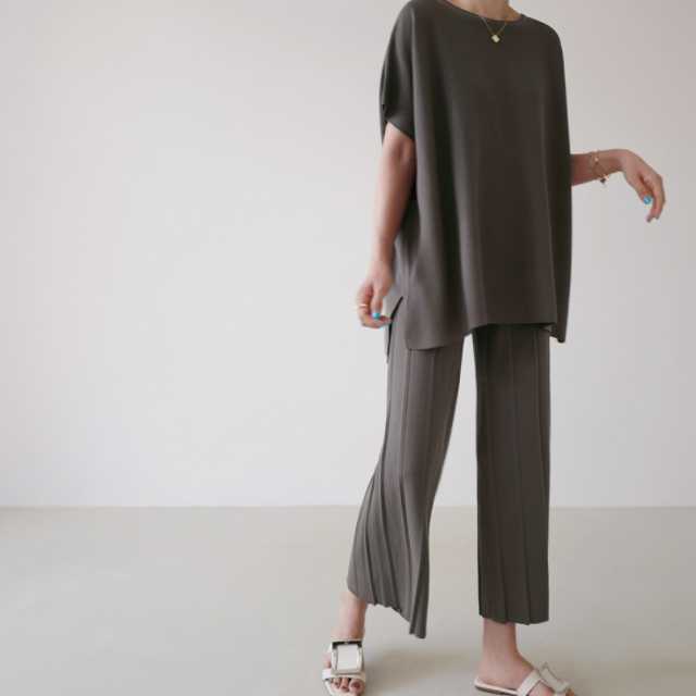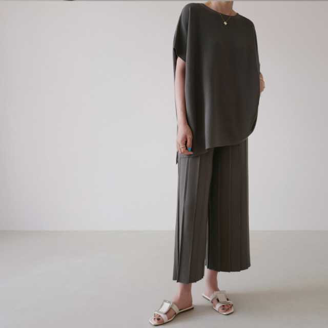 ルームウェア レディース 上下セット セットアップ パンツ トップス パジャマ カットソー ワイドパンツ プリーツ 無地 全3色 Roomwear