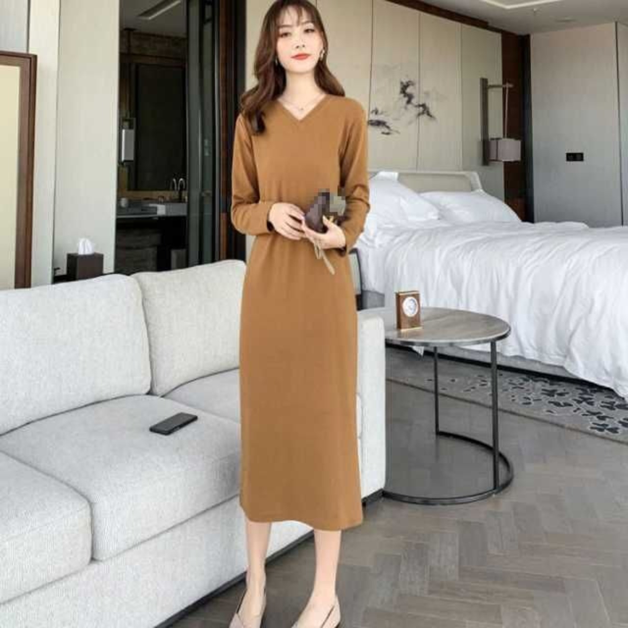 ワンピース ニットワンピース ロングワンピース マキシ丈 長袖 Vネック 春 秋 冬 スリム ミモレ丈 スカート セーター ニット 全3色 大きいサイズ キレセク
