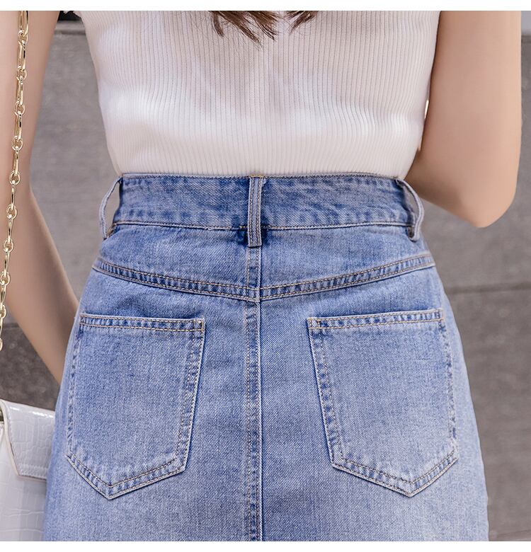 ウォッシュドデニムとチュールの切替がフェミニンな、aラインスカート。