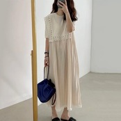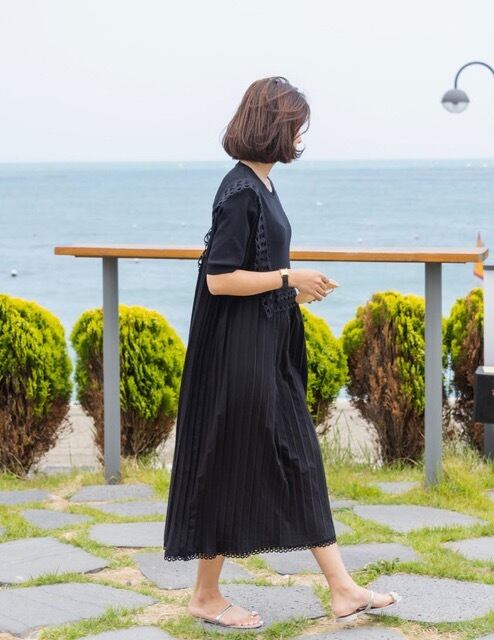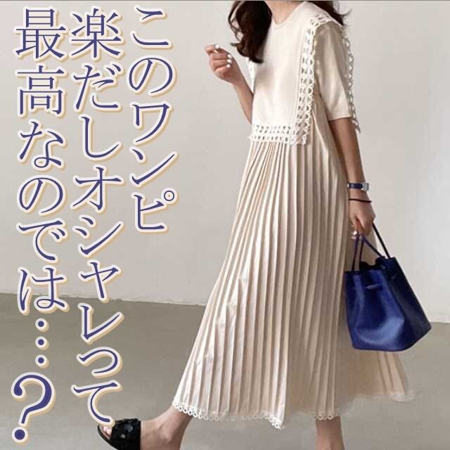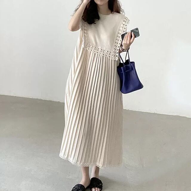 レディース プリーツ加工 エモい レトロ ロング丈 ワンピース ゆるっと レース ステッチ プリーツ特集