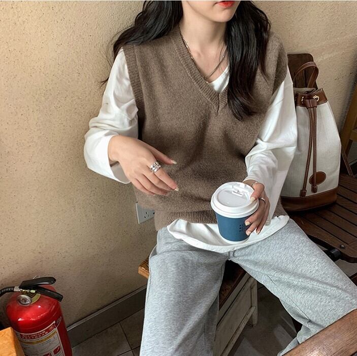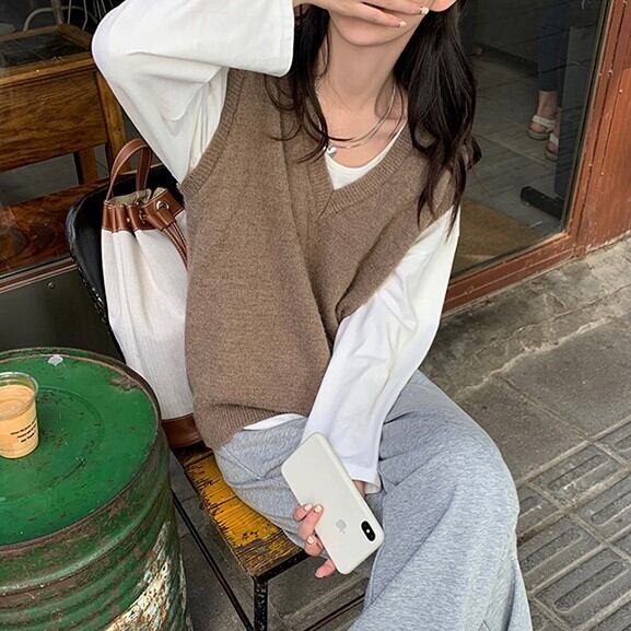 《入荷待ち》ニットベスト ベスト セーター トップス 無地 Vネック レディース 大人カジュアル オシャレ 秋 冬 キレナチュ
