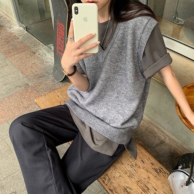 ゆったりめなシルエットが大人かわいい、ニットベスト。