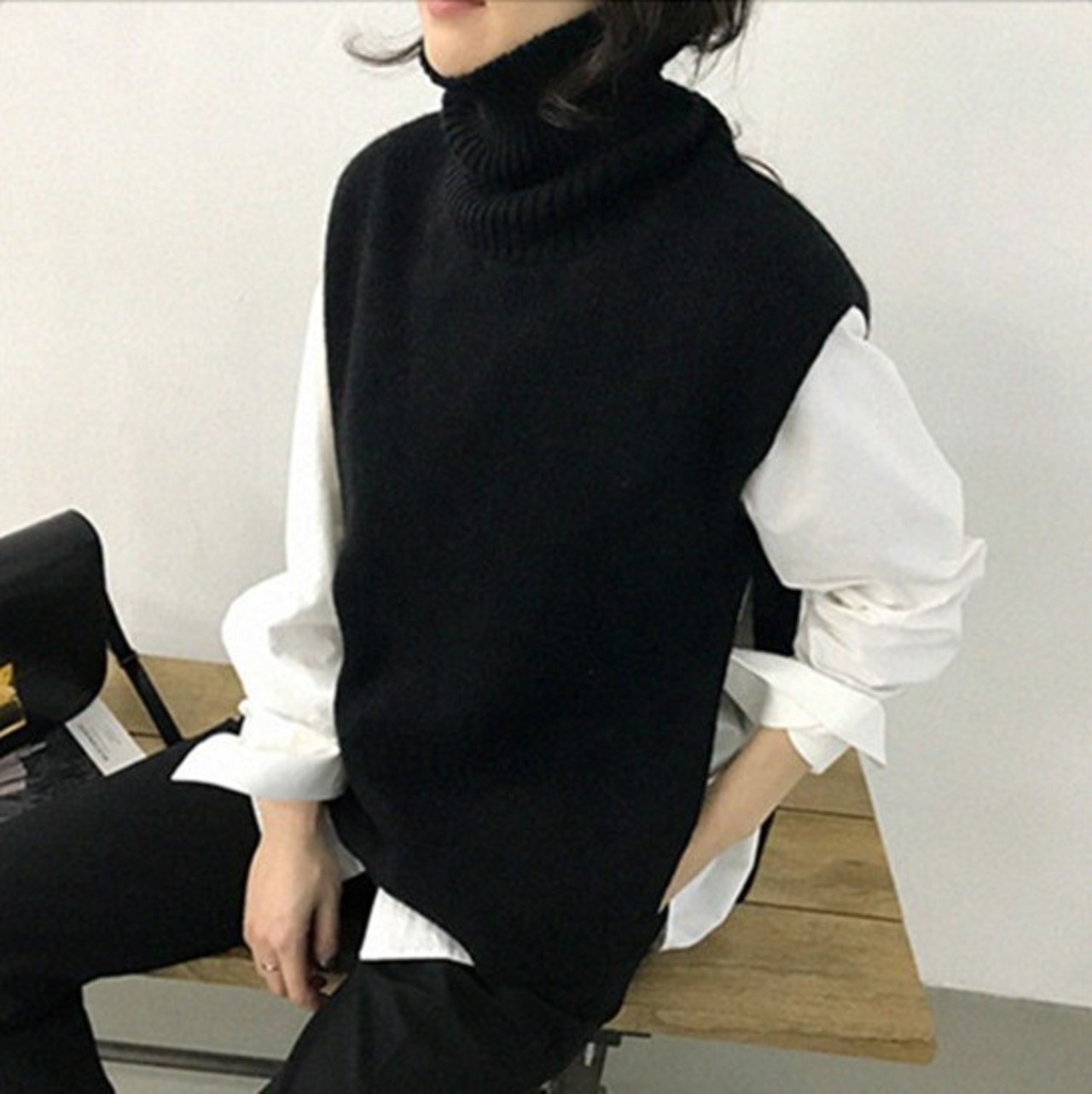 《入荷待ち》ニットベスト セーター ベスト タートルネック トップス 無地 レディース 大人カジュアル きれいめ シンプル カジュアル ショッピング お出かけ オフィス 通勤 デイリー 黒 秋 冬 キレナチュ