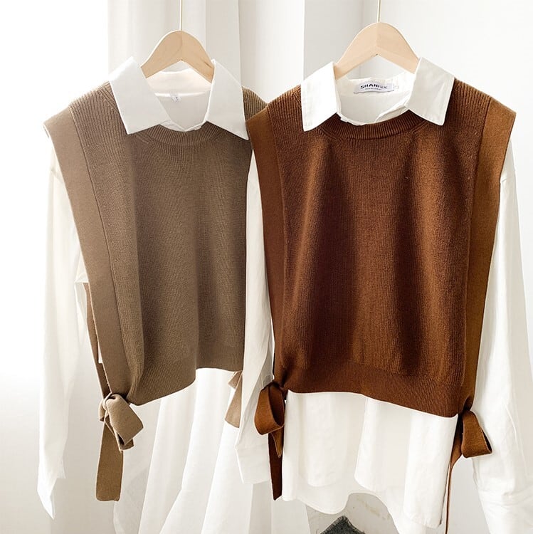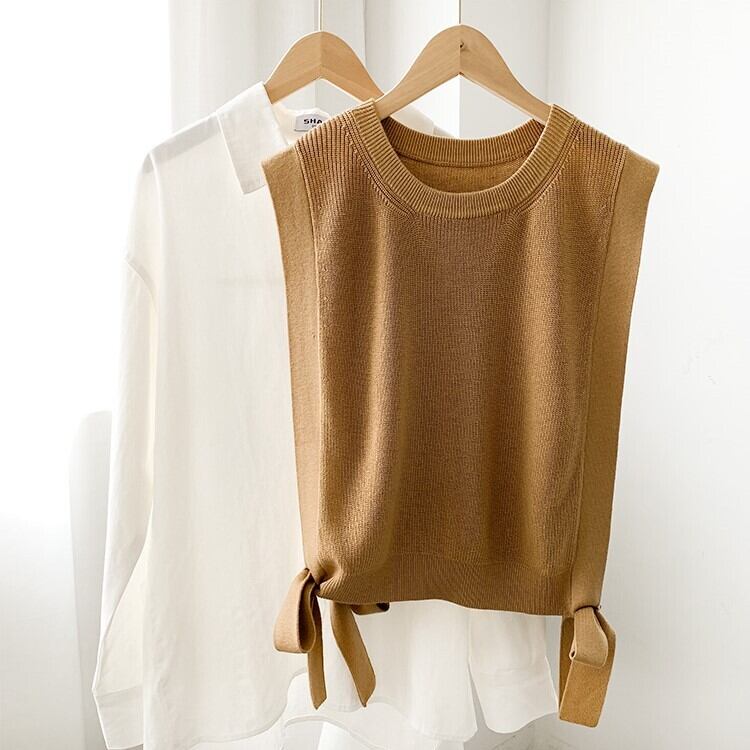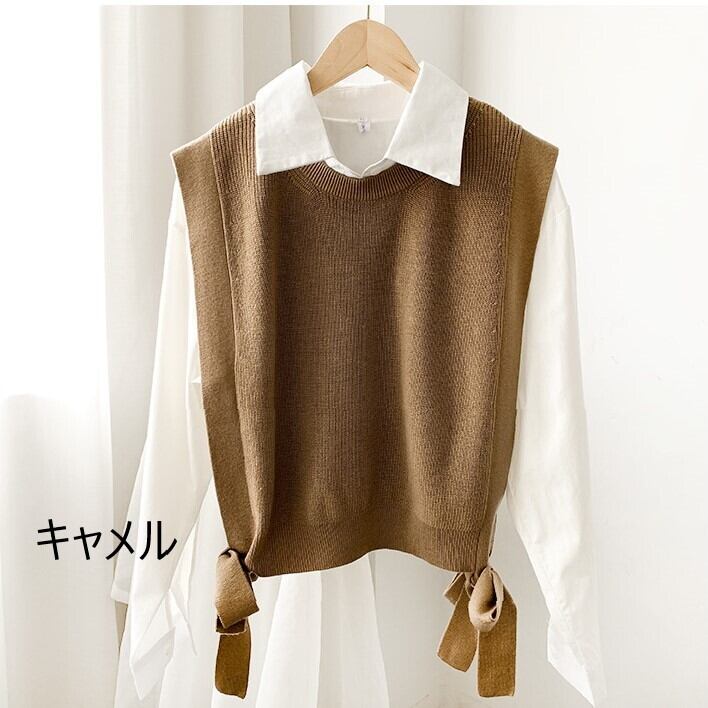 サイドリボンがアクセントの、大人かわいいニットベスト。