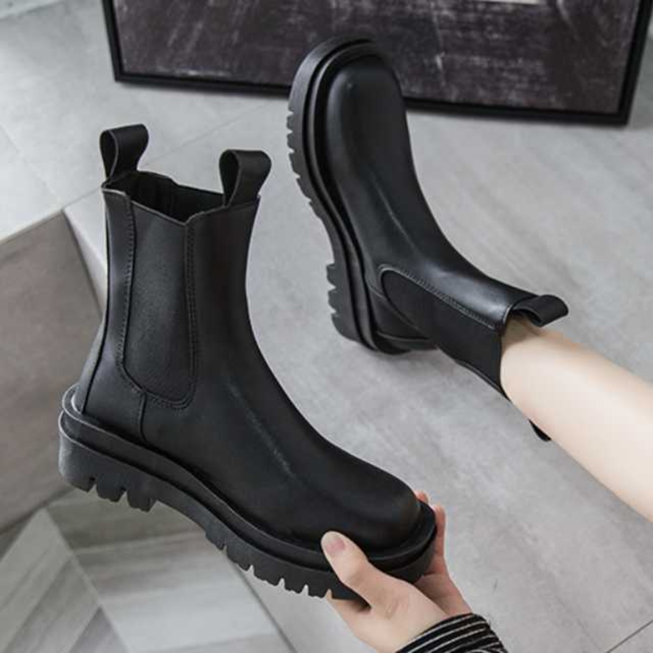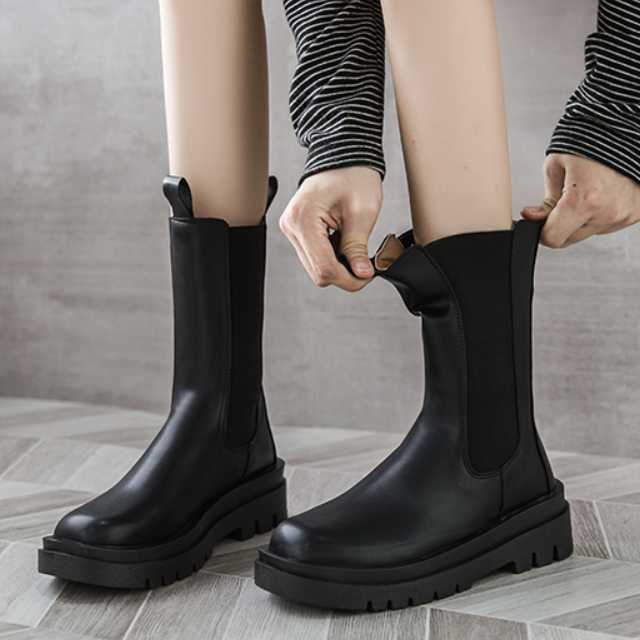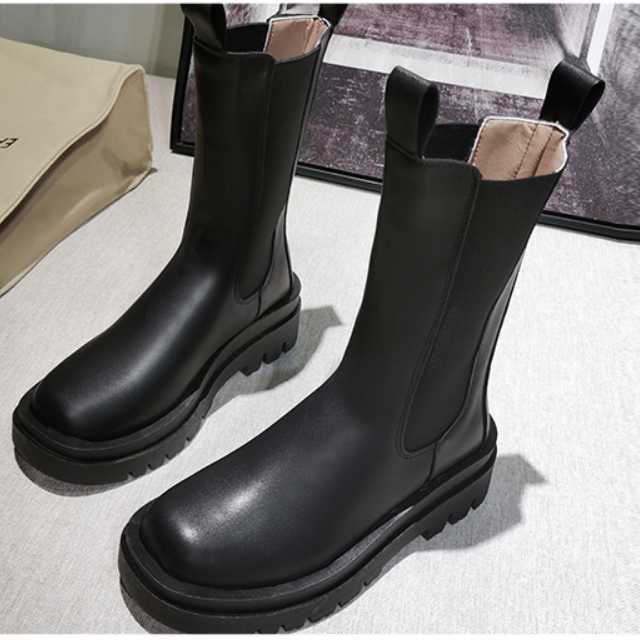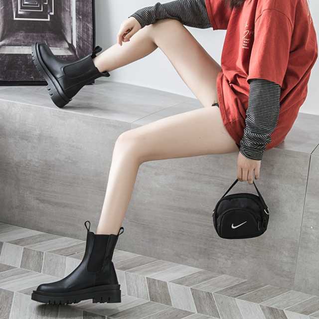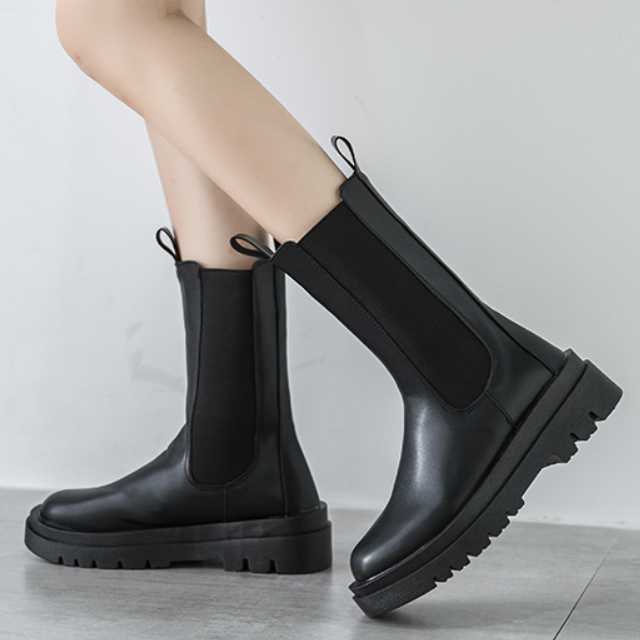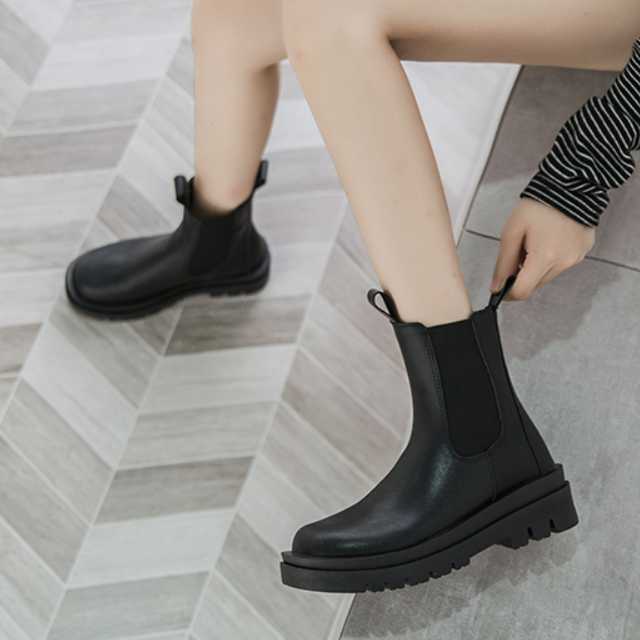 ブーツ マーティンブーツ ミディ丈 ショート丈 レディース レースアップブーツ 太ヒール ローヒール 安定感 黒 ブラック シンプル 滑り止め 歩きやすい 秋冬靴 美脚 カジュアル 2種類
