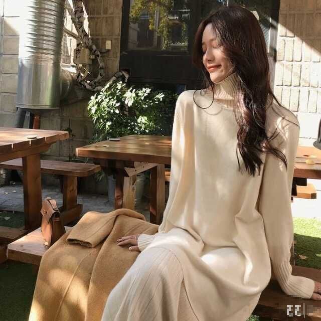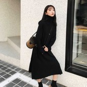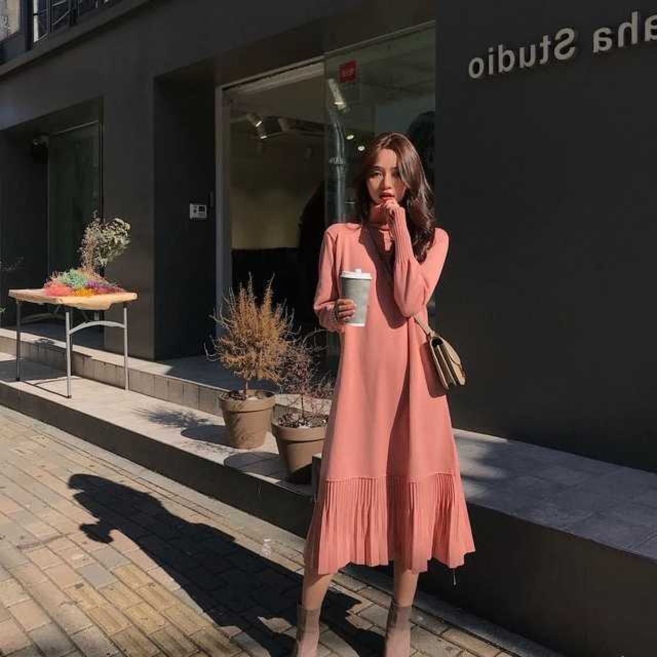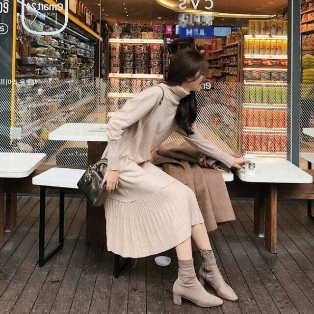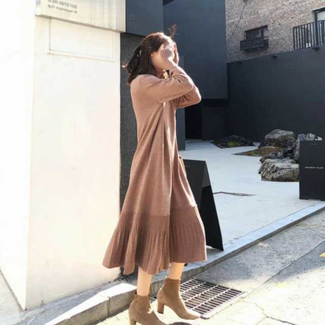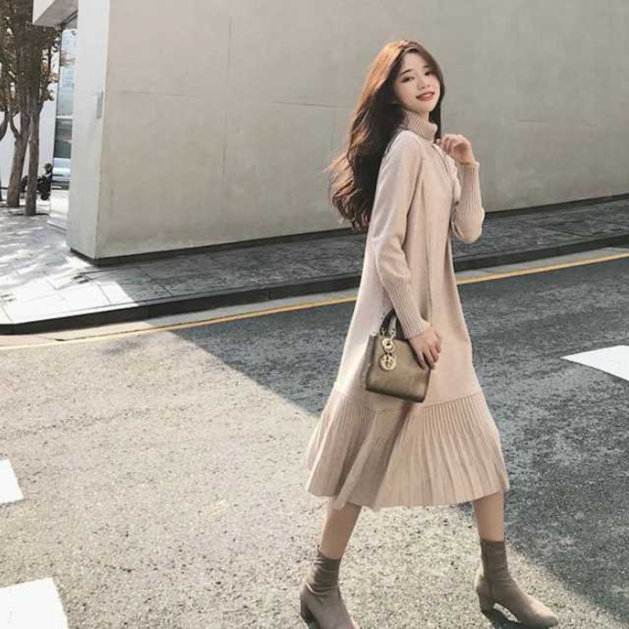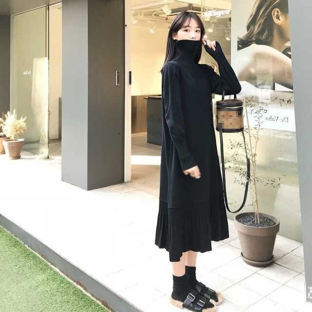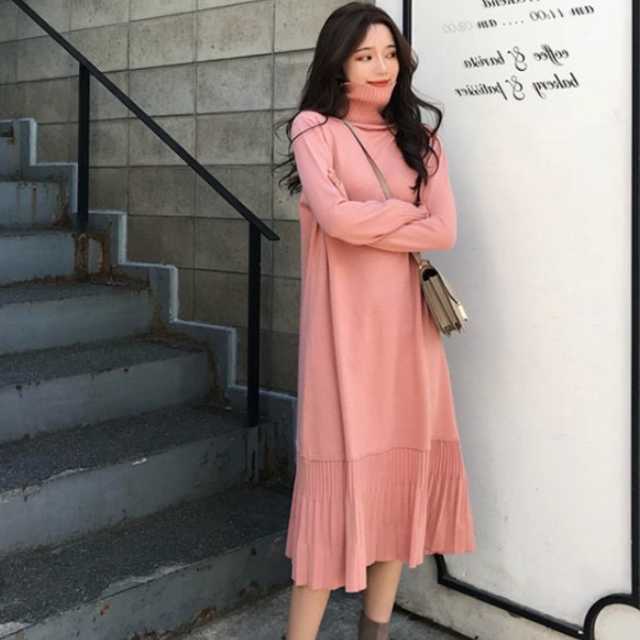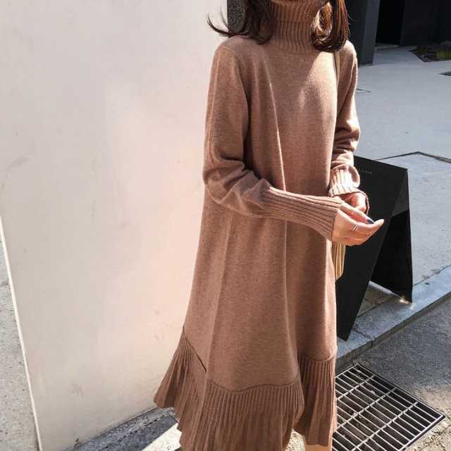 《入荷待ち》ワンピース ニットワンピース レディース ロングワンピース ハイネック 長袖 Aライン プリーツワンピース フレアワンピース セーターワンピース キュート 秋冬 無地 キレセク