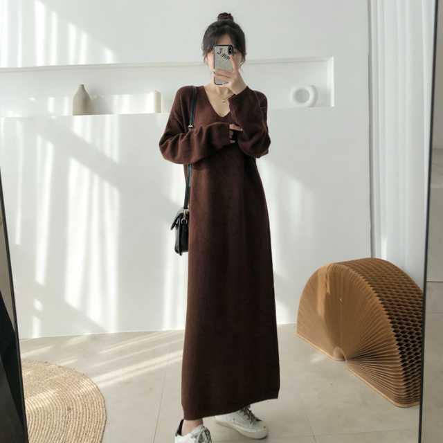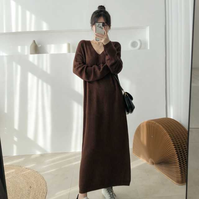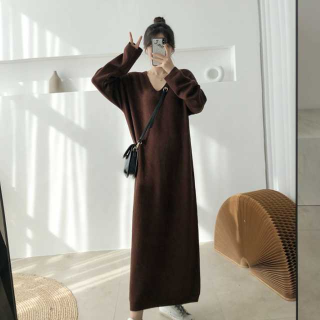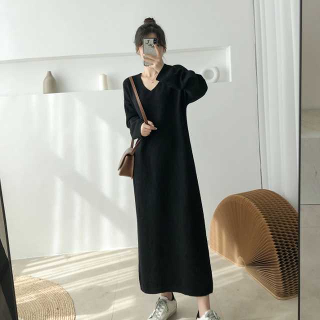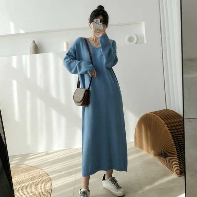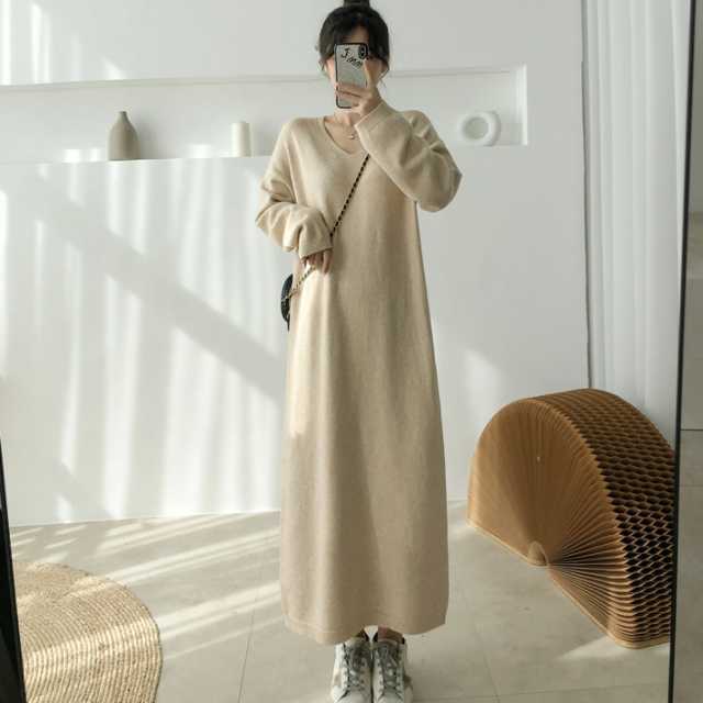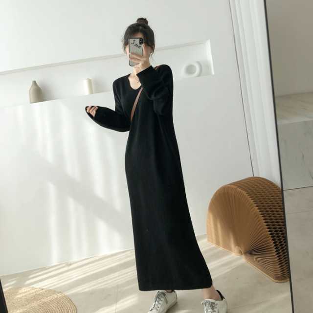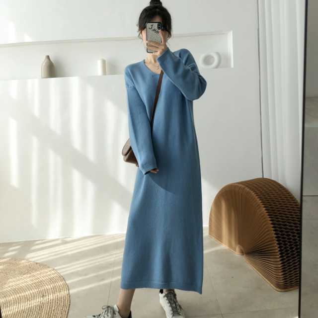 ワンピース ニットワンピース ロングワンピース ロングニットワンピース シンプル ロングニット Iライン レディース マキシワンピース マキシ丈 ゆったり 体型カバー 着痩せ 秋冬ワンピース 秋冬 キレセク