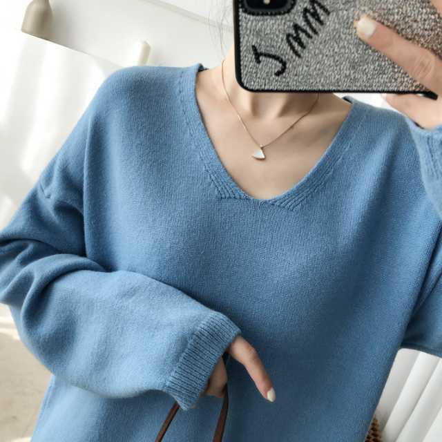 曲線デザインがかわいいVネックで上半身はスッキリした印象に。
