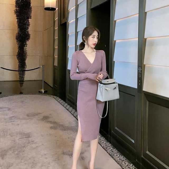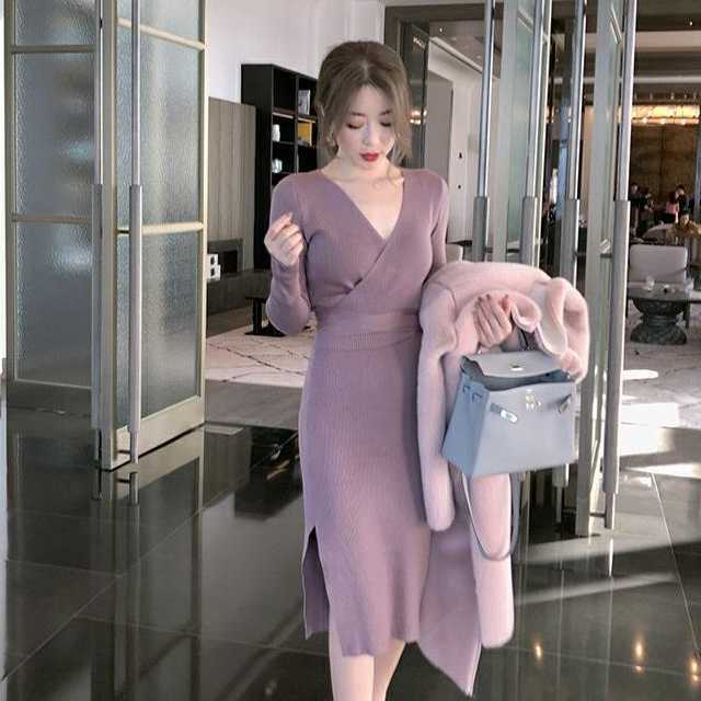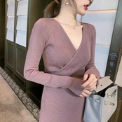 大人気のカシュクールデザインが魅力的なニットワンピース♪