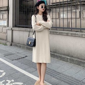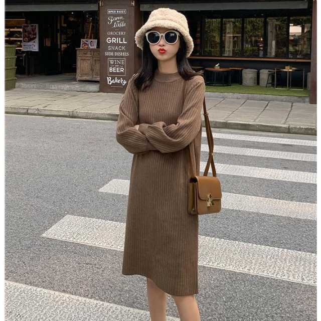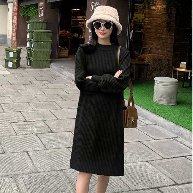 《入荷待ち》ワンピース ニットワンピース ラウンドネックワンピース レディース セーターワンピース ラウンドネック ミディアムワンピース ミディアム丈ワンピース ミディアム カジュアル ゆったり 全4色 キレセク