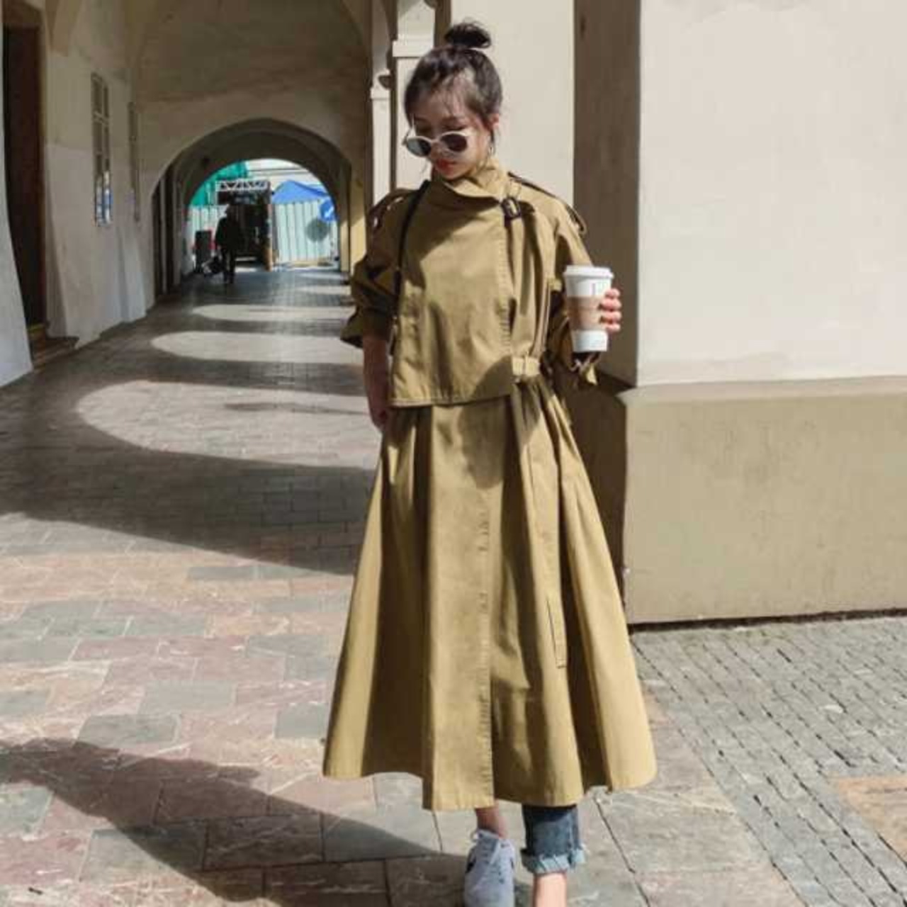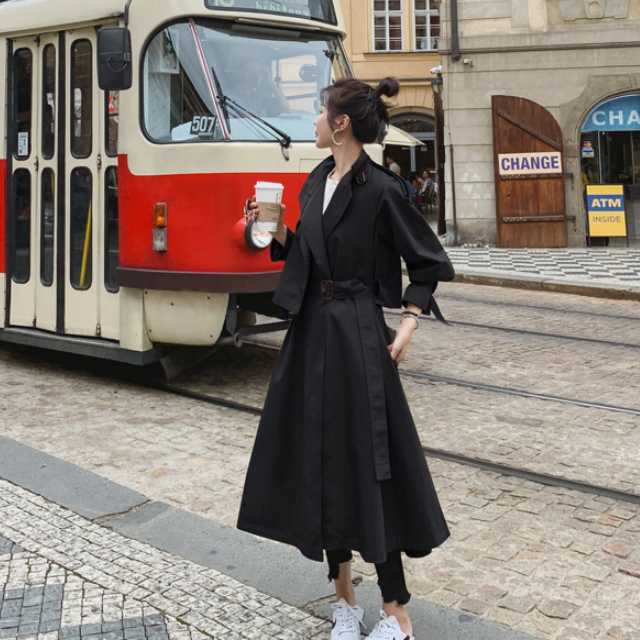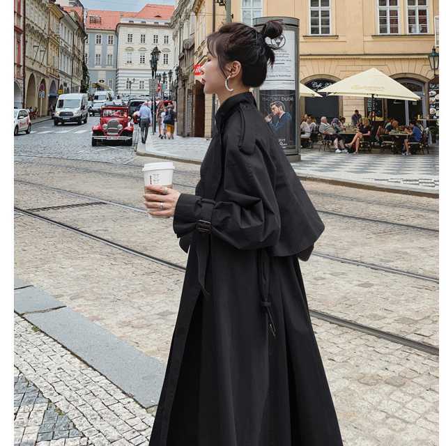 《入荷待ち》アウター トレンチコート ジャケット ロングジャケット マキシ べルト付き キャンディスリーブ レディース 秋 冬 アウター ロング丈 上着 アシンメトリー 秋冬コート 通勤 カジュアル シンプル 着痩せ 体型カバー 秋服 冬服 全2色 キレセク