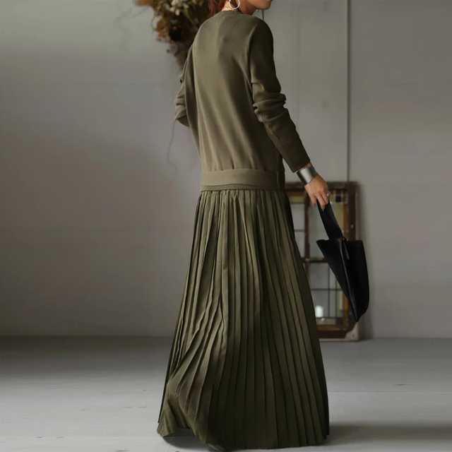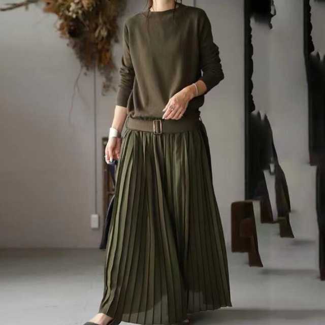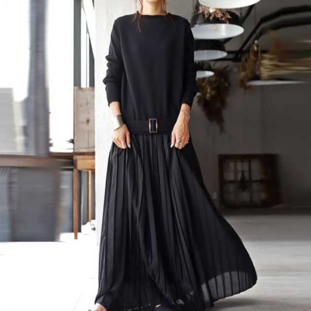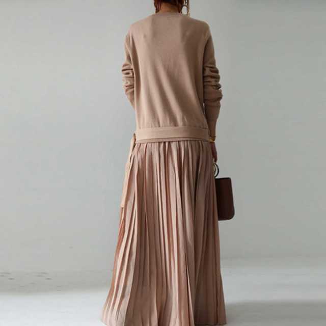 ワンピース ニットワンピース プリーツワンピース ロングワンピース レディース 長袖 秋冬 オールインワン ロング 綿混 ニット プリーツ ニットワンピ シフォン ベルト リブ ゴム編み キレセク