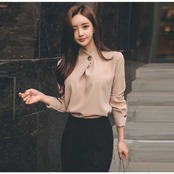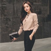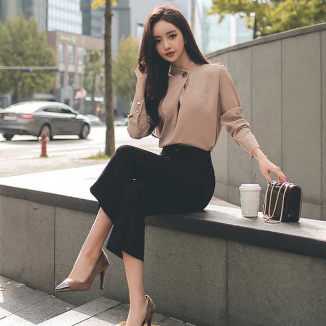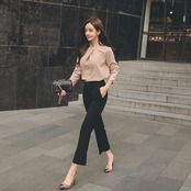 滑らかな生地のブラウスとシックでスマートなパンツがセットになったセットアップ♪