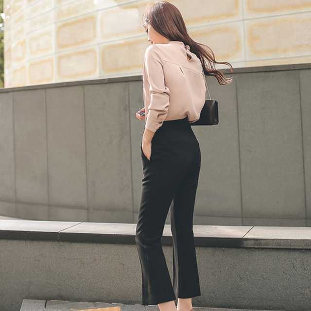 《再入荷》セットアップ アンサンブル レディース シャツ パンツ パンツスーツ 長袖 ブラウス 7分丈 トップス ボトムス ドレス スーツ ブラック くすみピンク きれいめ 大人 上品 エレガント キレセク
