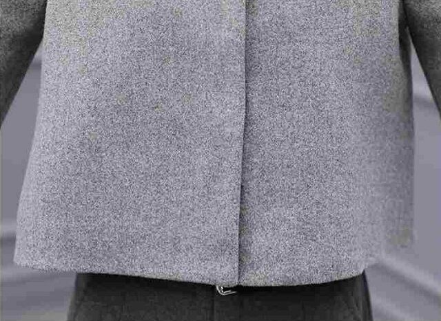 まるでケープのようなジャケットはケープスリーブもかわいく、インナーとのコーデを楽しめる七分袖が魅力的。