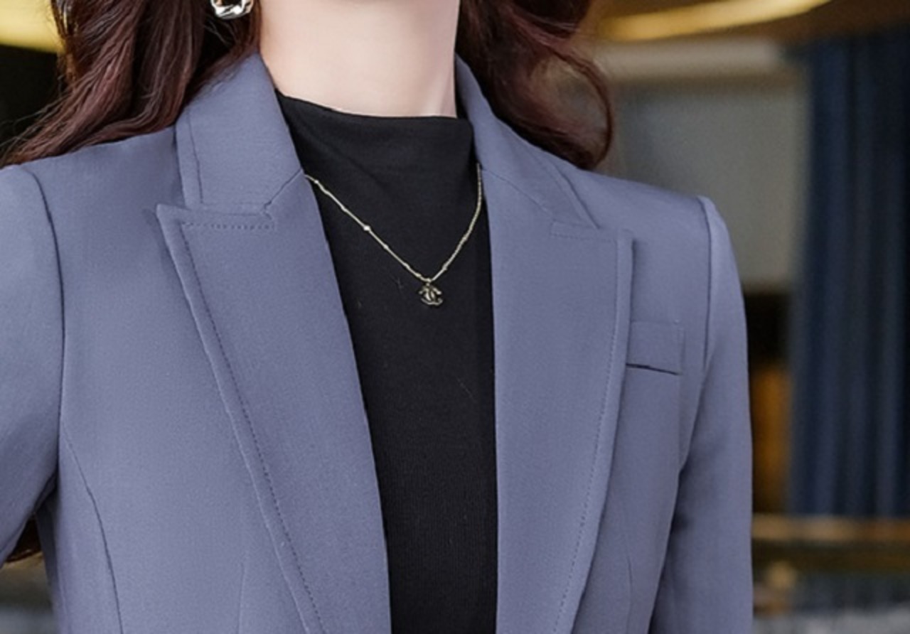 長め丈のジャケットは気になるヒップラインをカバーしてくれます。