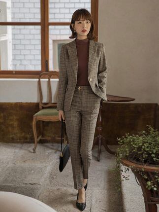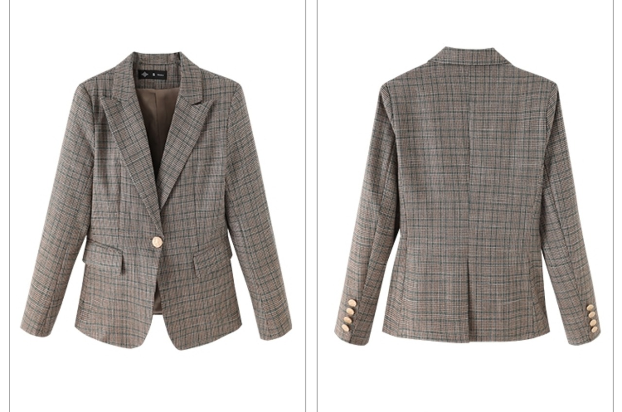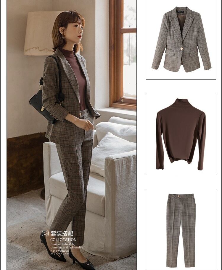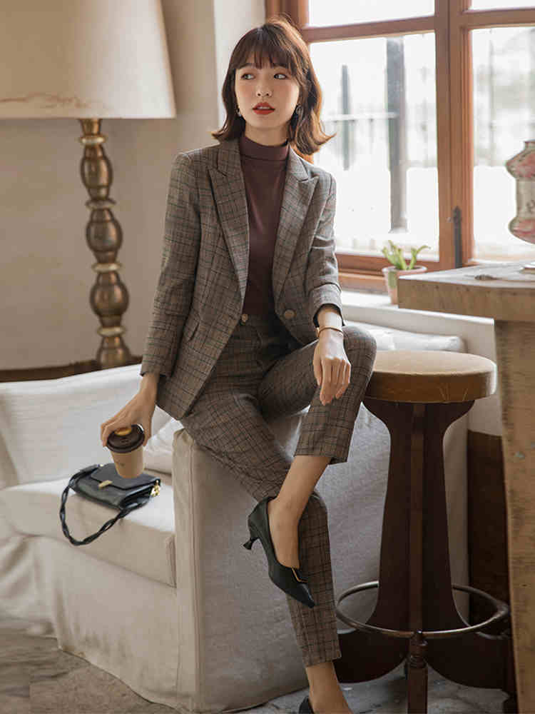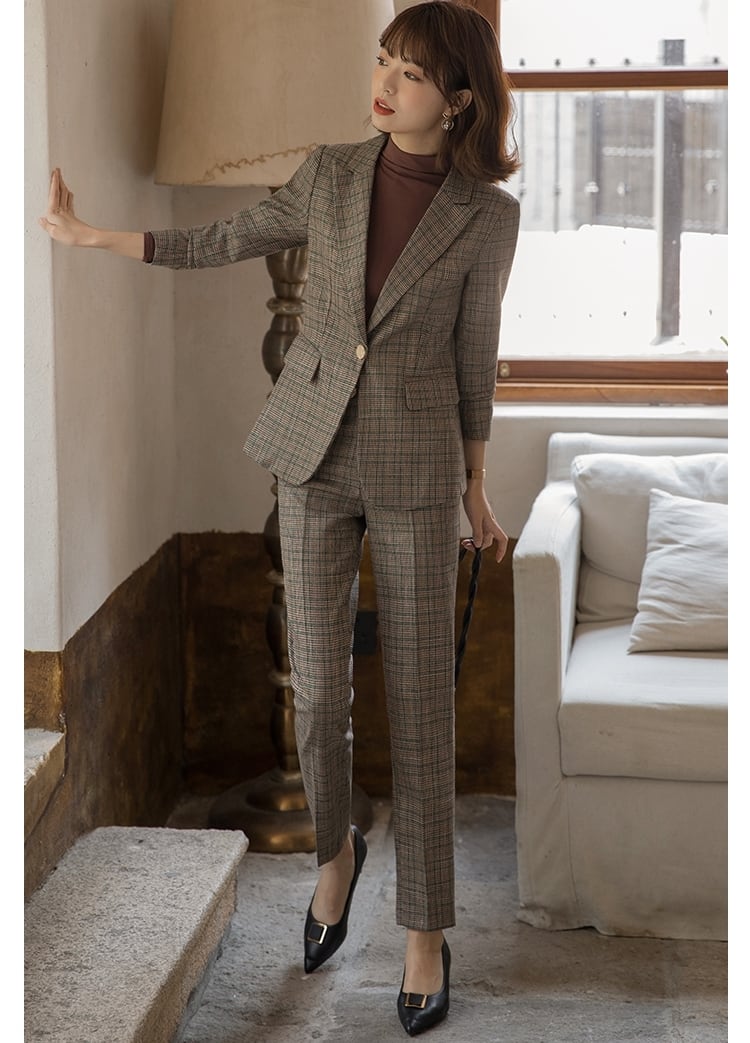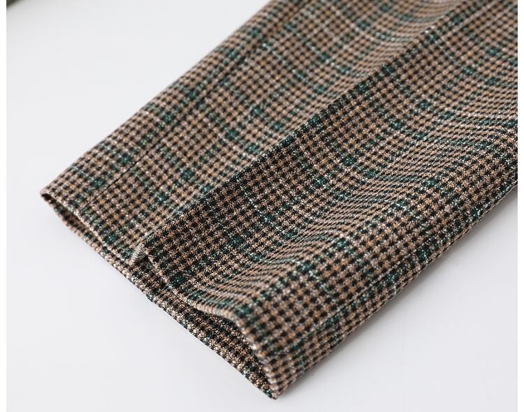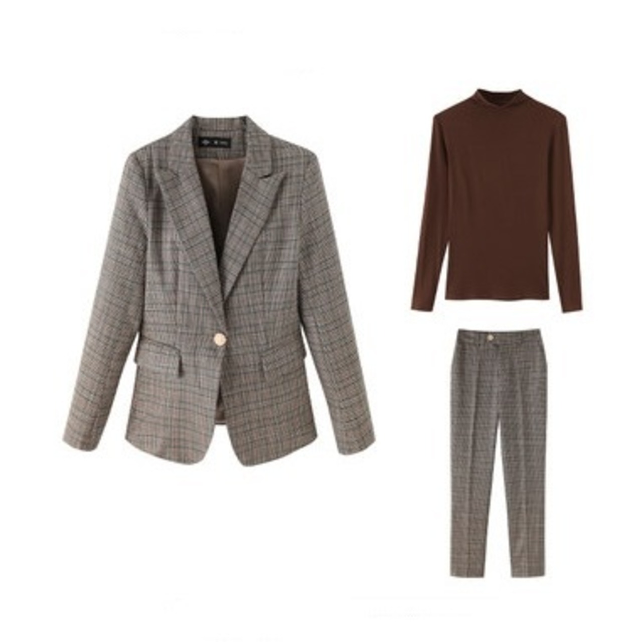 レトロなチェック柄がおしゃれな、ジャケット・トップス・パンツの3点セット。