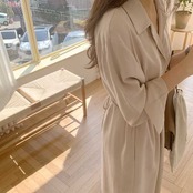 ナチュラルな生地の質感が心地いいロング丈のシャツワンピース♪