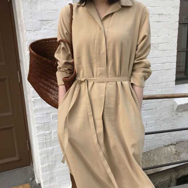 ワンピース シャツワンピース レディース マキシ丈 ロング丈 長袖 スタンドカラー Vネック シャツワンピ ウエストマーク 無地 ストラップ きれいめ 大人ワンピ 春 夏 キレセク