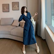 全体の裾に広がるドレープも素敵な、大人のワンピースです。