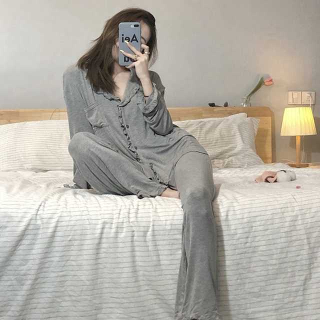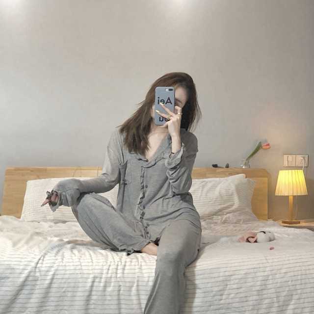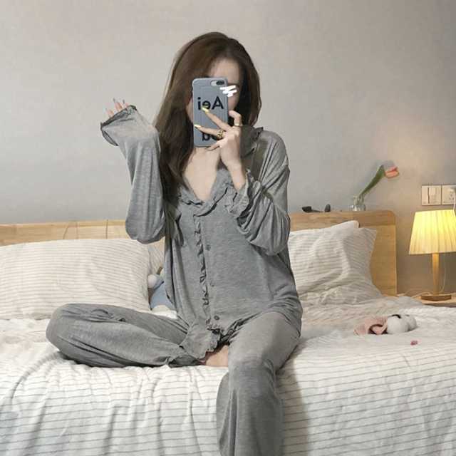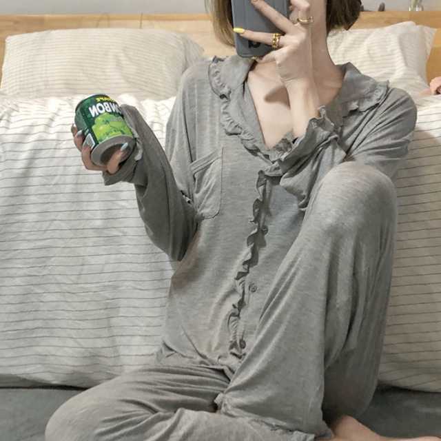 ルームウェア パジャマ レディース フリル 長袖 長ズボン 上下セット 可愛い 部屋着 シンプル 大人かわいい パジャマ ナイトウエア 春 夏 秋 キレセク